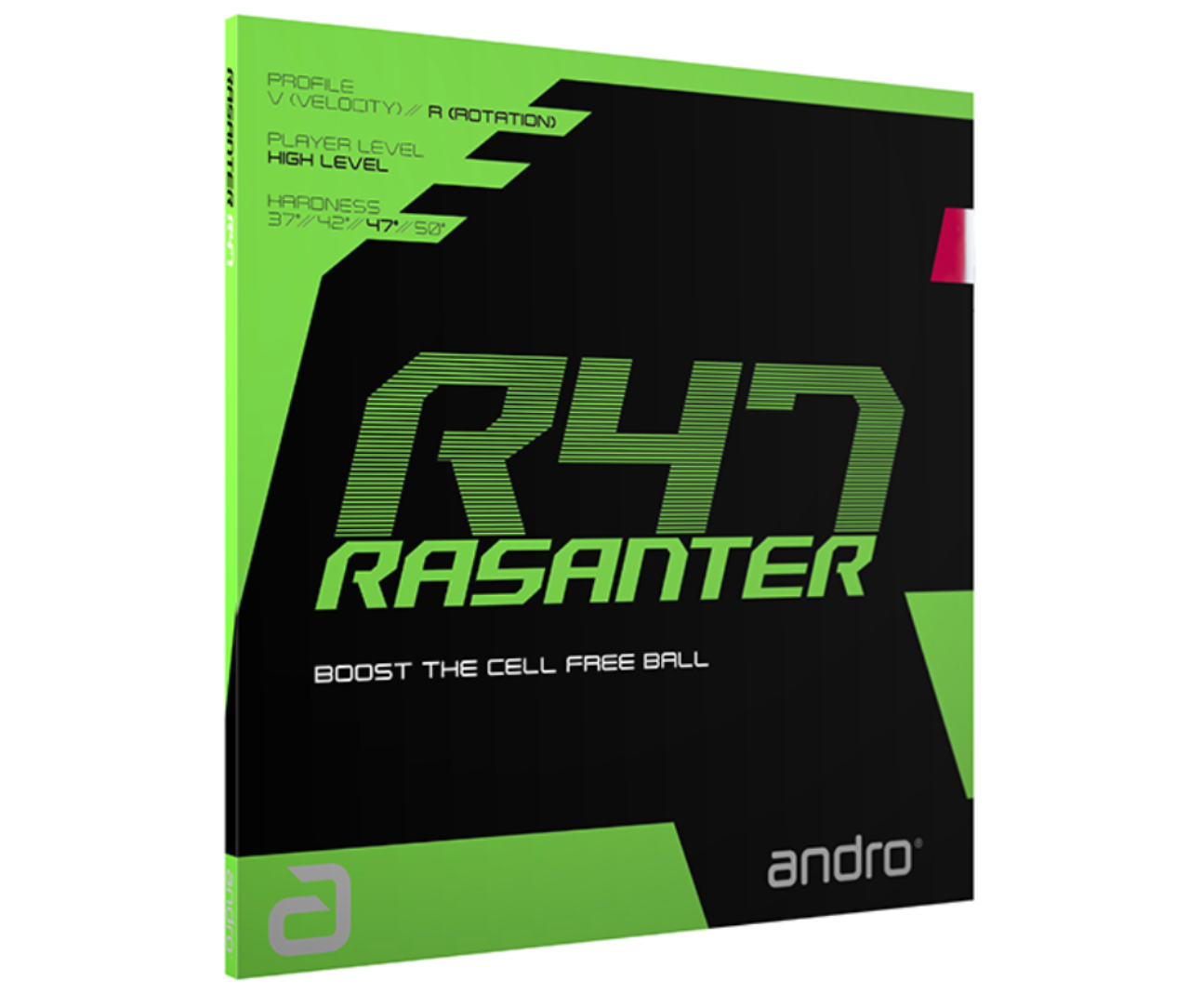 The RASANTER topsheet compensates for the rotational disadvantages of the 40+ ball, while at the same time the ultra-thick sponge increases the catapult effect and makes up for the lower flight speed of the Cellfree ball.